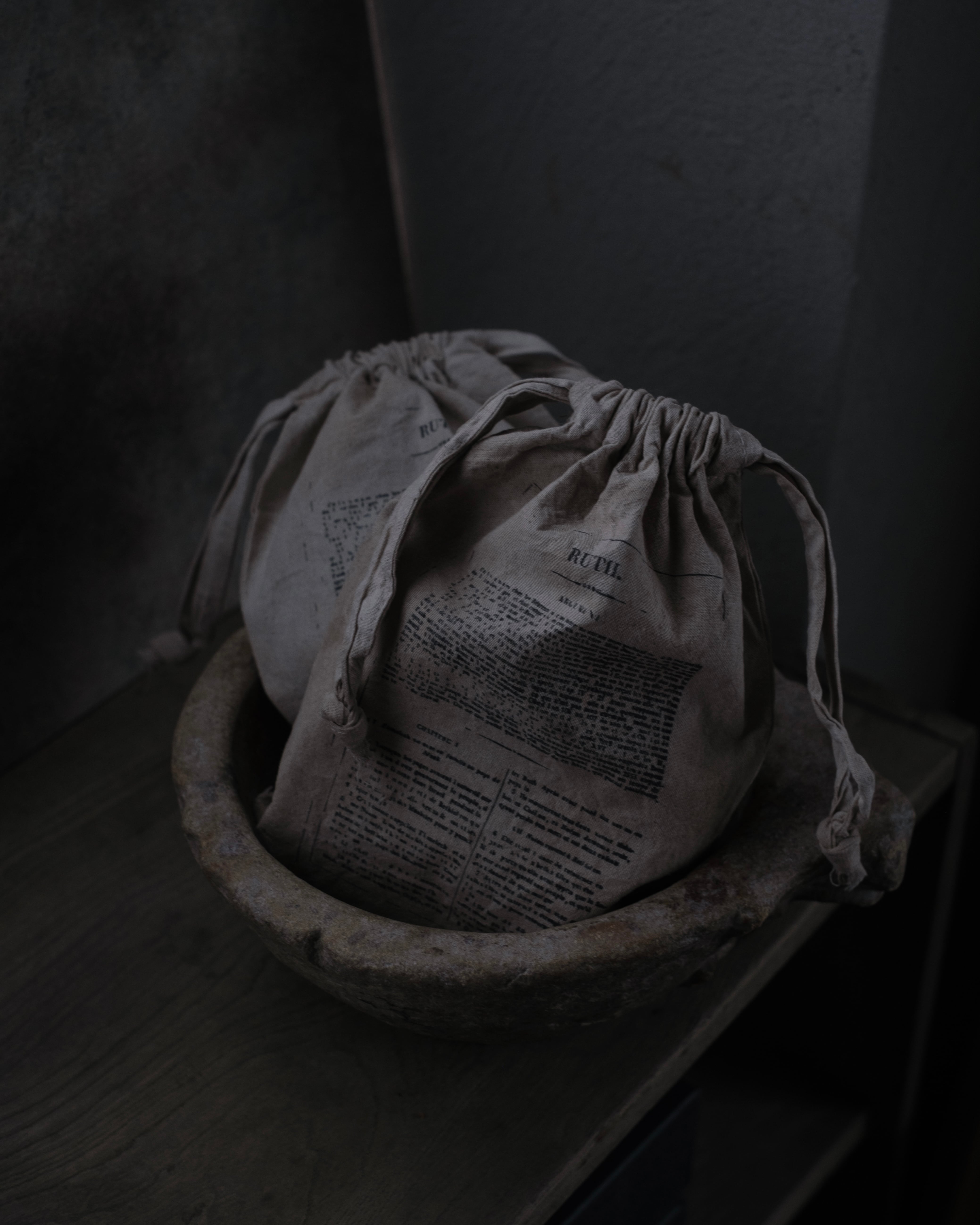 • Coffee-dyed drawstring pouch